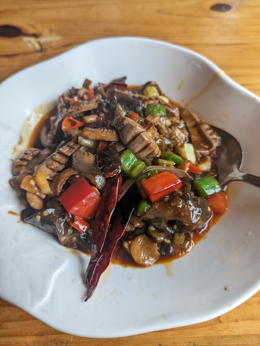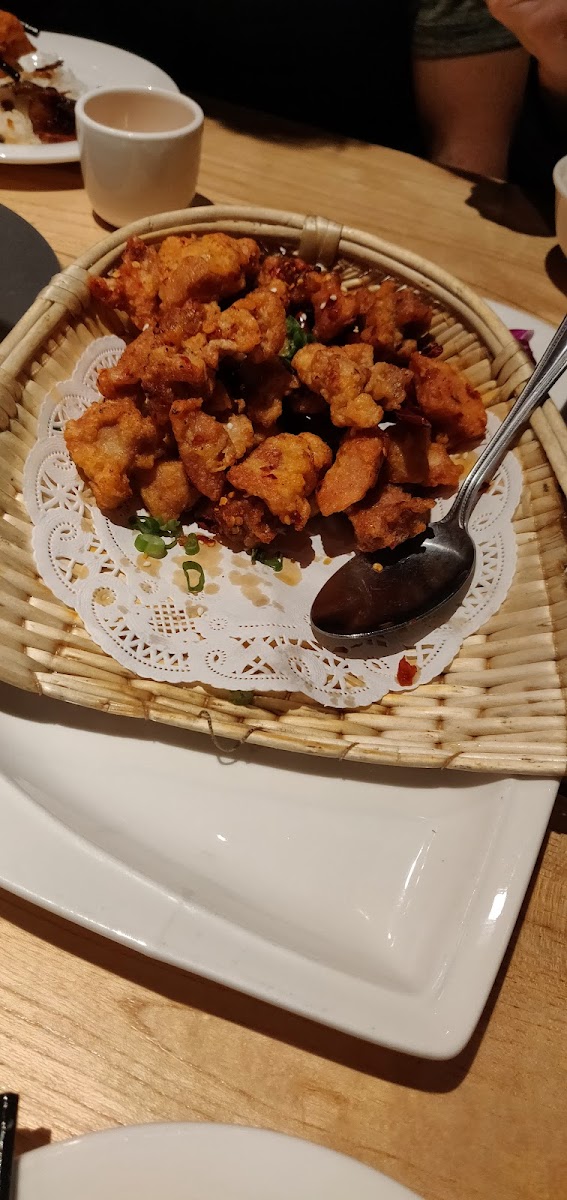 First time. Really good food. A slightly more upscale and chef inspired take than some of the surrounding places, with slightly higher prices to match, but still feels like a bargain compared to nyc. Griddled Preserved pork with smoked bamboo was great. Salty, spicy. The preserved pork is like bacon and the bamboo is thin and crunchy. The ribs were fantastic. Tender. Cumin. Chilies. I’d want to make a version but add more chili powder and cumin on top with maybe some fried garlic. Spicy wontons - wontons themselves are great. Slippery. Plump. But that sauce is soooo good. I want to know how they get that garlic flavor in there. Mustard greens with garlic were a good compliment to round it out. Nothing crazy but I enjoyed having a different green than I’m used to and found the slight bitterness pleasant. I found the spice level to be present but not overwhelming. I’d actually ask for spicier next time. dishes were 1 or 2 chilies out of 3. Will be back to try more of the menu. I probably should have ordered something with some acidity since everything is rich, salty, garlicy, and spicy. Or maybe a steamed dish to add some lightness. Seems like the type of place where everything is good so enjoy the Hunan and Sichuan food.