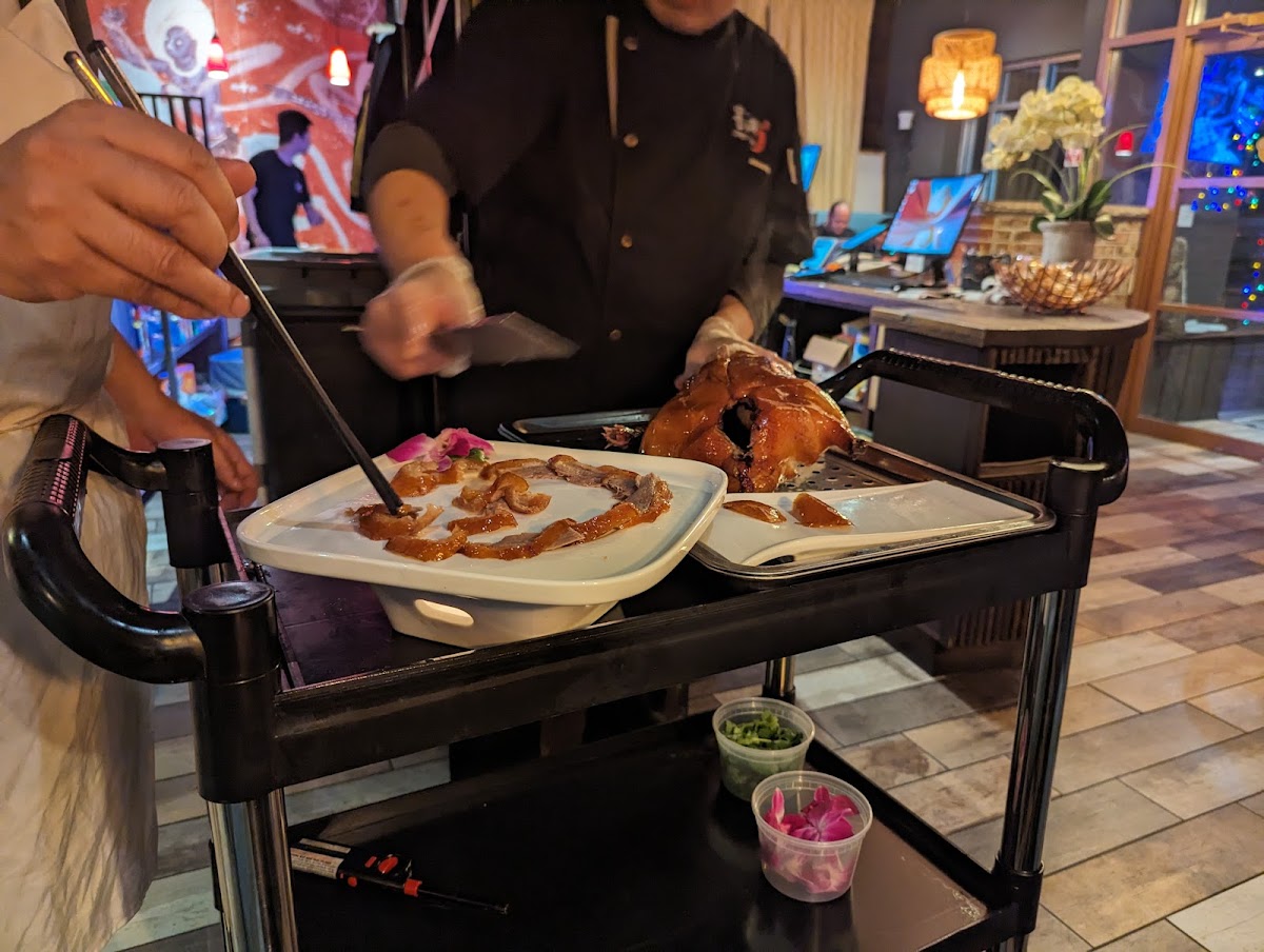 Food is always delicious! We always order the Peking Duck ahead of time. We had the delicious duck, skillet fish, lotus root, shrimp fried rice, and dan dan noodles. Everything was cooked to our liking, not too spicy! BYOB. We had a 6:30 reservation, every table was filled on a Friday night. The duck is better than at Peking Duck NYC. Servers are really nice. Thank you!